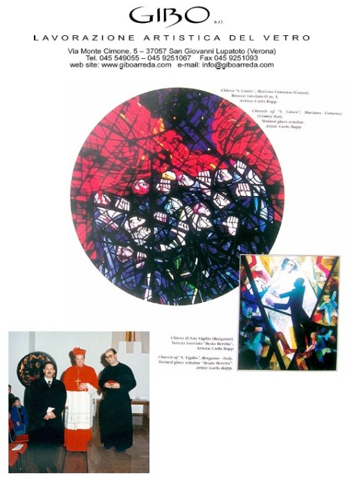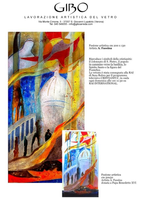 La vetreria artistica GIBO da oltre 40 anni produce vetrate istoriate con pregiati vetri soffiati a bocca, in collaborazione con affermati artisti italiani e stranieri.