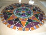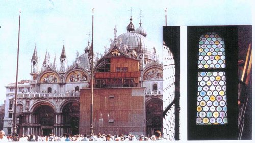 L’azienda realizza inoltre vetrate geometriche con i tradizionali dischi in vetro soffiato di Murano e realizza vetrate legate al piombo in collaborazione con il suo maestro vetraio.